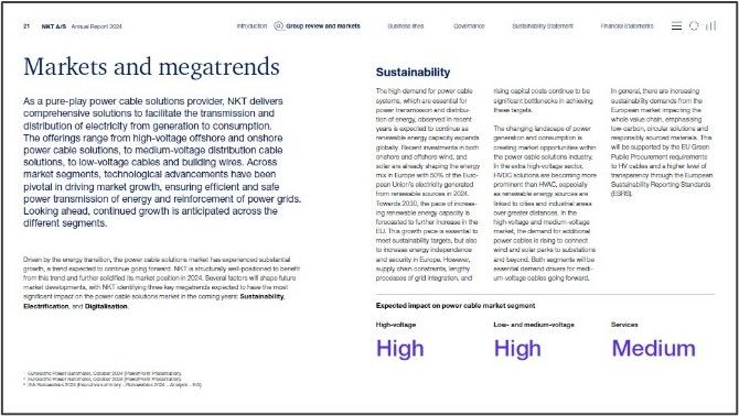 NKT is describing markets and megatrends, and how these trends are expected to impact on the power cable market in the short-, medium- and long-term perspective.