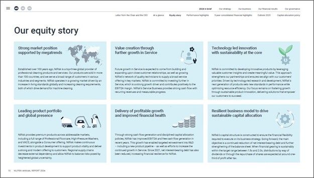 Nilfisk presents the equity story in a brief and appealing way with a focus on relevant reasons to invest in the company.