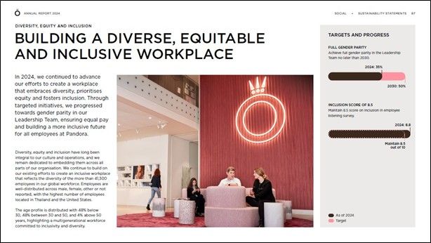 Pandora is communicating its targets, results and initiatives for diversity, equity and inclusion in a way that demonstrates commitment and progress.