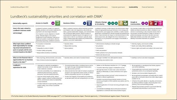 Lundbeck is integrating the UN SDGs into the annual report illustrating how this correlates with the company’s priorities and the DMA.
